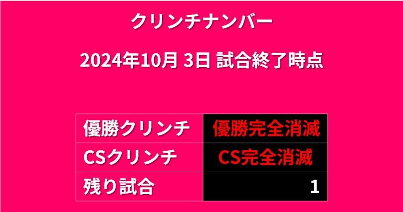 【試合結果】2024年10月3日(木)◆vs ヤクルト 24回戦 (神宮)