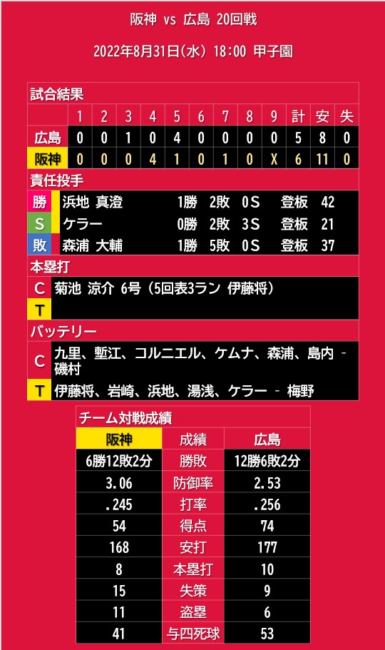 【試合結果】2022年8月31日(水)◆vs 阪神 20回戦 (甲子園) 2022年08月31日 カテゴリ:広島東洋カープ◆試合結果 mixiチェック しかしまぁ四死球の多い球団だよな。 タグ :#試合結果#ガツガツGUTS!