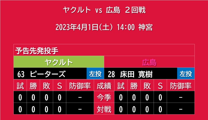 【予告先発】2022年4月1日(土)◆vs ヤクルト 2回戦 (神宮)