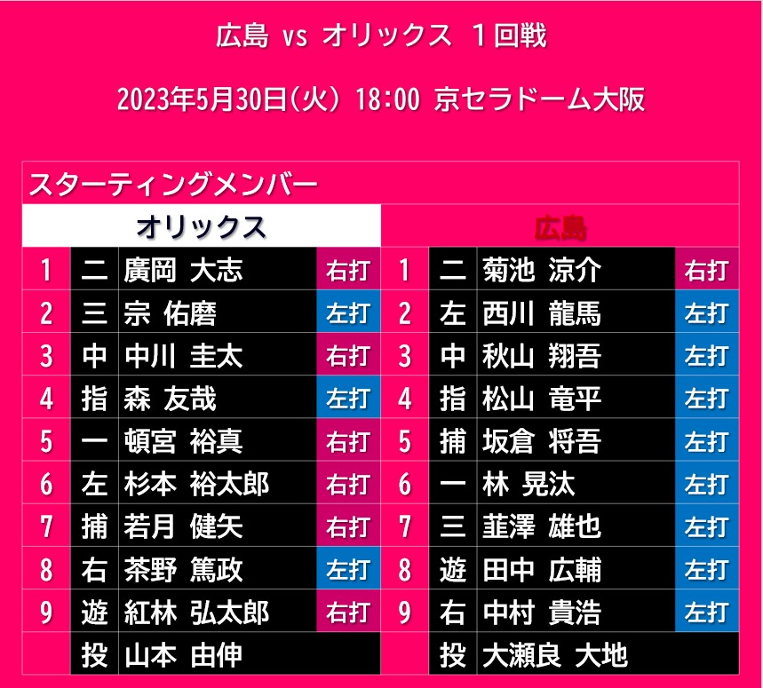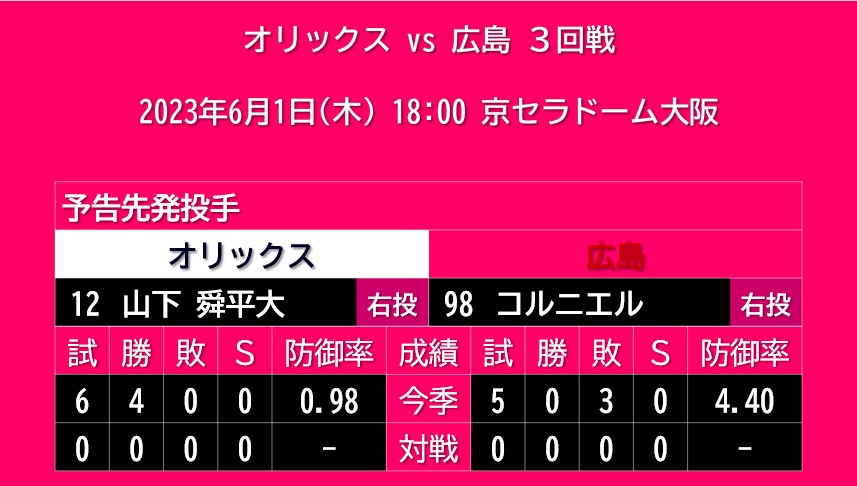 【試合結果】2023年5月30日(火)◆vs オリックス 1回戦 (京セラドーム大阪) 2023年05月30日 カテゴリ:広島東洋カープ◆試合結果 mixiチェック やっぱり、こうなるんですね・・・2安打。手も足も出ずですか。左並べれば打てるって相手じゃないですからね。カード頭、交流戦頭にはウチのエース、暢仁が立つ、っていうようにならない限りはダメなんでしょうね。13連敗ですか・・・何とか出来ないものですかね。 タグ :#試合結果#交流戦2023